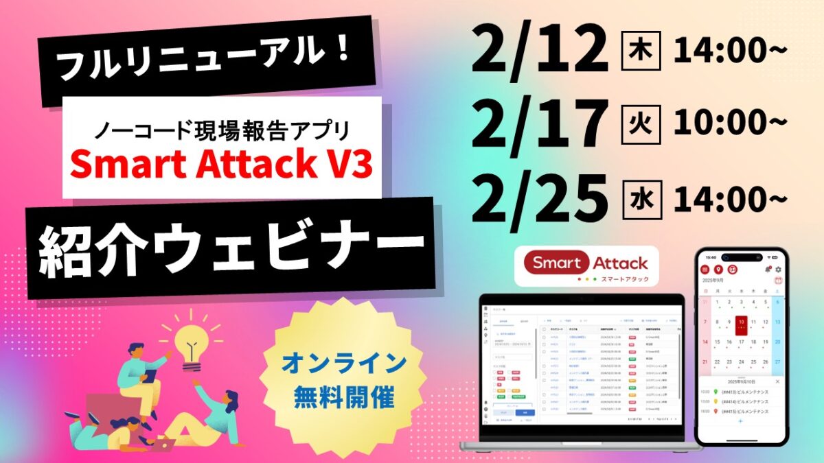 株式会社G-Smartは、フルリニューアル版ノーコード現場報告アプリ「Smart Attack V3」をご紹介するウェビナーを開催いたします。