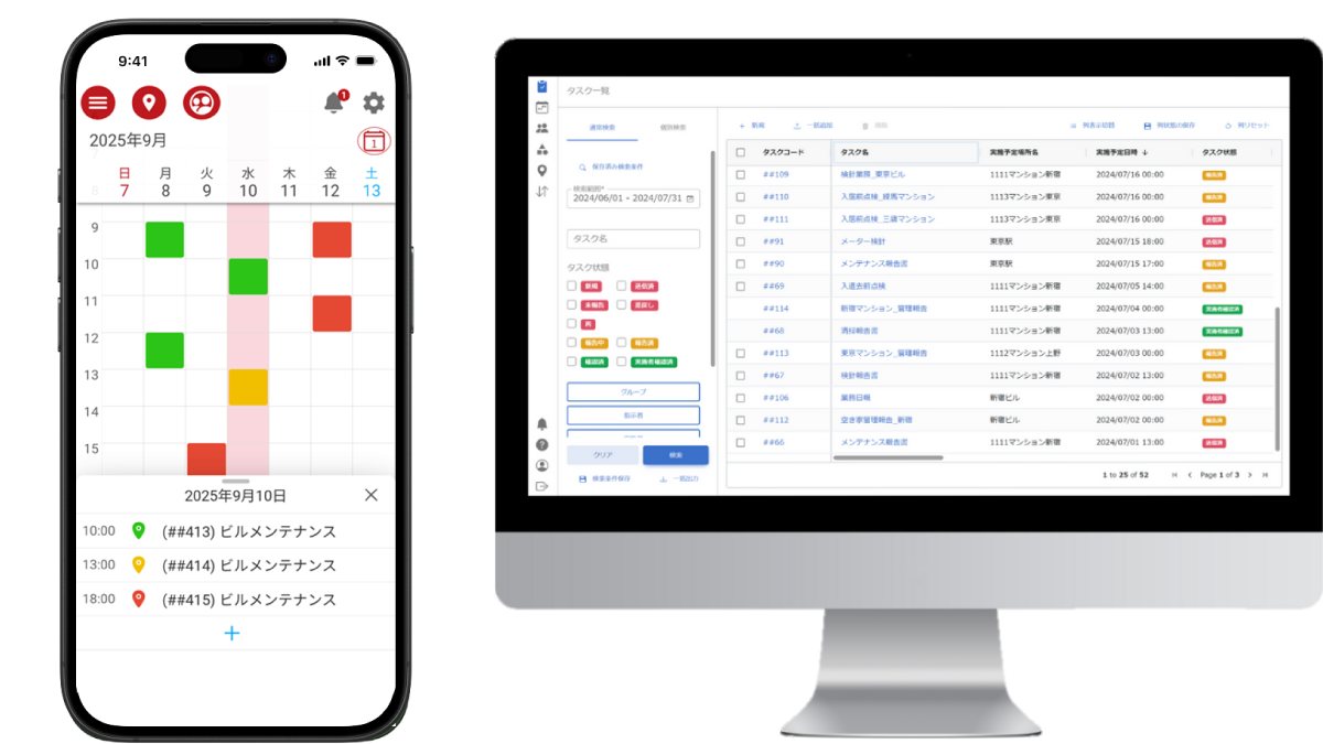 現場担当者は、スマートデバイスの専用アプリで作業内容を確認できます。
