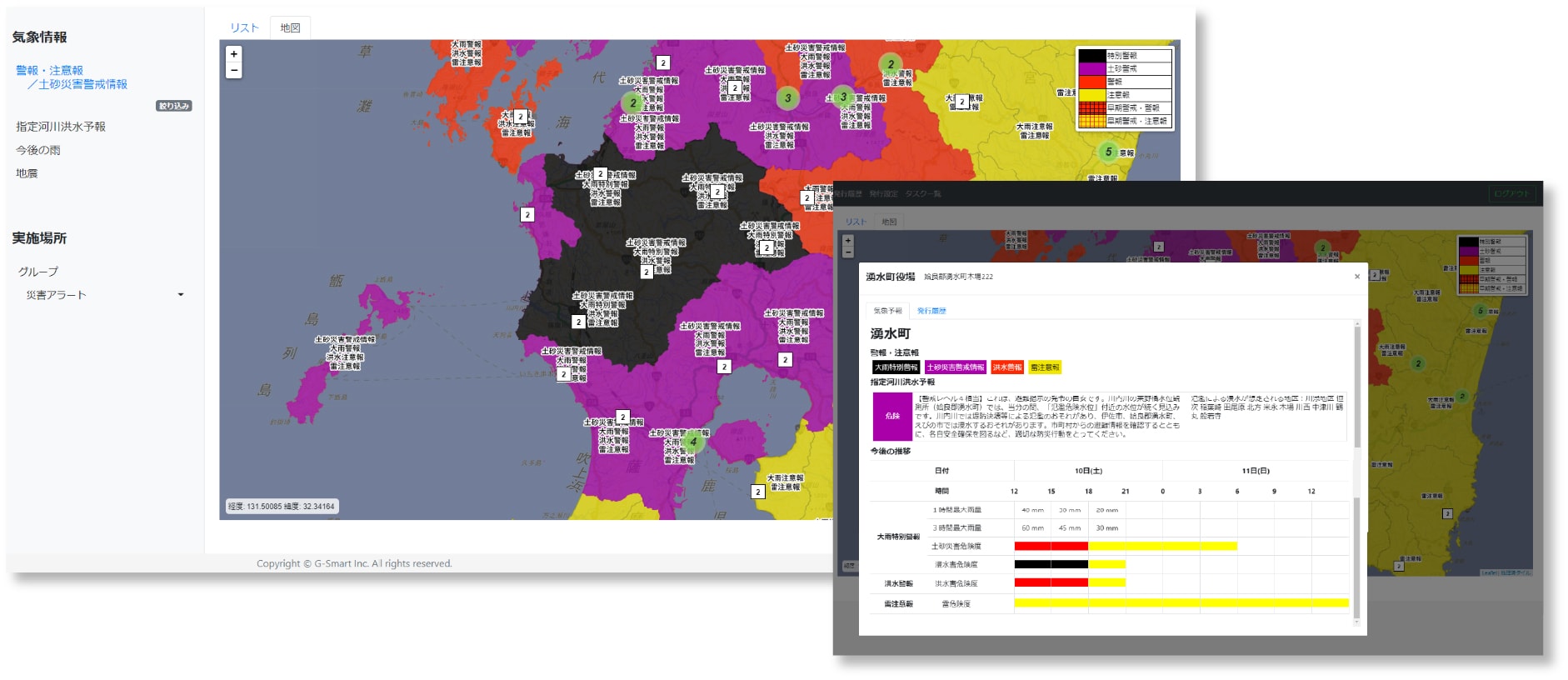 Smart Attack Guardianは、発表される気象情報を基に、