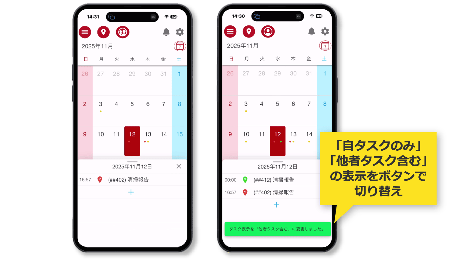 画面UIを一新し、カレンダー機能、グループ内他者タスクの閲覧、地図機能、進捗表示機能など