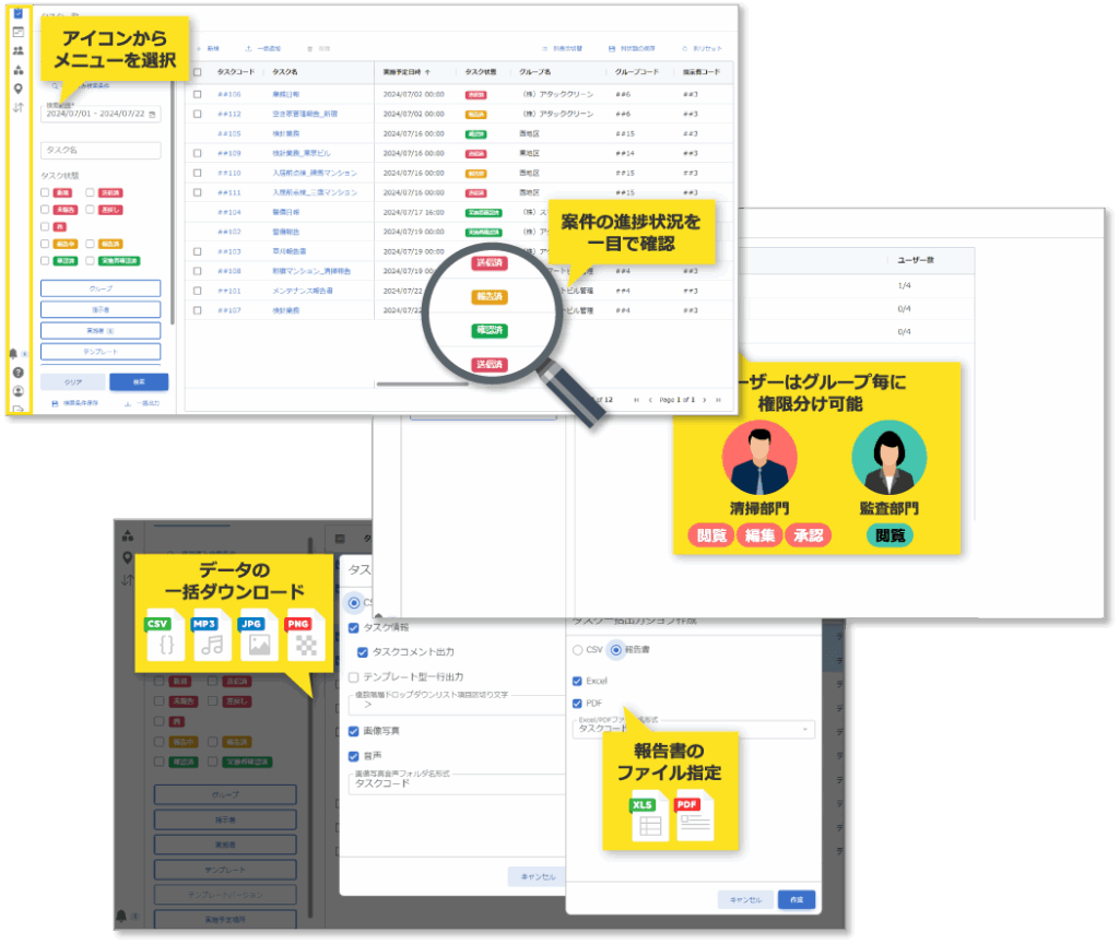 Smart Attack V3 マネージャー〜V3管理者用PC画面〜 管理者向けのPC管理画面における画面デザインの一新からユーザー管理やテンプレートなど使いやすさにこだわった機能アップを行っています。 V3管理者用PC画面はこちら Smart Attack V3 専用アプリ〜V3現場用スマホアプリ〜 画面UIの刷新、処理速度の向上、地図機能などが大幅に強化。あらゆるフィールド業務でさらに使いやすくなりました。 V3現場用スマホアプリはこちら 無料トライアルしてみませんか? Smart Attackを1ヶ月間無料でご利用いただけます!お気軽にお申し出ください 無料トライアルはこちら